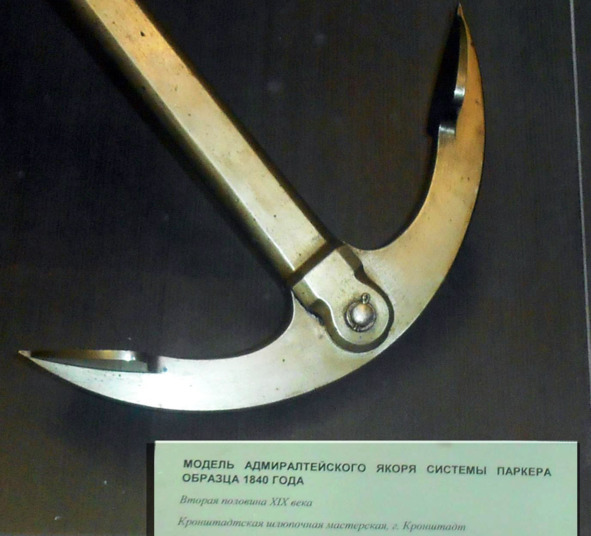 Следующий экспонат, подпись у него «Модель адмиралтейского якоря системы Паркера образца 1840 года». Работников музея не смущают слова «образца 1840 года» в разделе эпохи Петра Великого.