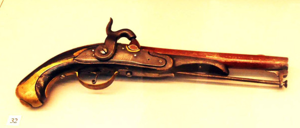 В витрине войны 1812 года находится пистолет с ударно-капсюльным замком. Как было озвучено ранее, ударно-капсюльный замок был у оружия образца 1843 года.