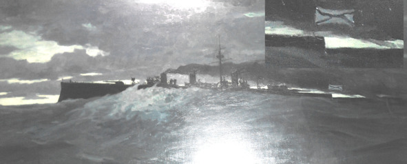 В зале, посвященном началу Русско-японской войны, находится картина «Крейсер „Новик“ прорывается во Владивосток».
