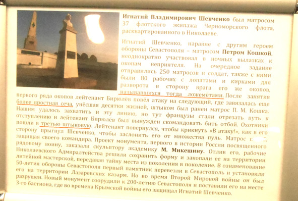 Ну а табличка с рассказом о подвиге матроса Игнатия Шевченко – только смеха ради.