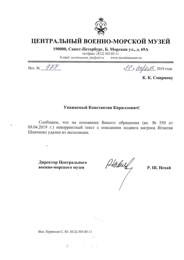 Получается, что ЦВММ – не музей, который обязан правдоподобно освещать историю флота, а картинная галерея свободных художников. Пусть это будет на их совести.