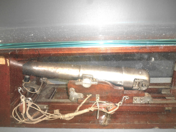 Табличку изменили и на новой написали правильный калибр 44 мм (1,75 дюйма ШВЕДСКОГО). Но эпопея с табличкой орудия на этом не закончилась. Через некоторое время на ней появилась фраза, что оно устанавливалось на марсах для стрельбы по миноносцам.