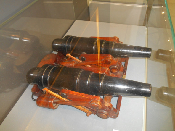 На табличке с подписью к этим экспонатам было написано, что это орудия системы Рудмана (да, именно Рудмана, а не Родмана). Письма с разъяснением, что орудия Родмана – гладкоствольные орудия, отлитые по особой технологии (на охлаждаемом сердечнике, что приводило к закалке, т.е. упрочнению стенок канала ствола, так называемые «отлитые по американскому способу»), а не нарезные, как эти, привело лишь к замене таблички. Но на ней уже было написано, что это орудия системы Рассказова.
