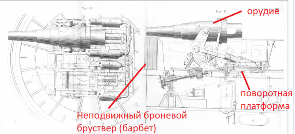 Работники музея не знают, что барбетных орудий не бывает. Бывает барбетная установка орудия. А это не одно и то же.