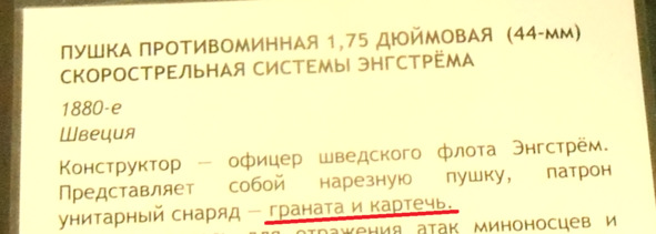 И я понял, почему на сайте музея находятся бронебойные снаряды для 37-мм орудия Гочкиса, и подтвердилось предназначение этих орудий для стрельбы по минам.