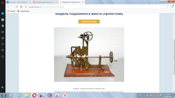 Причем модель подъемного винта находится в экспозиции музея.