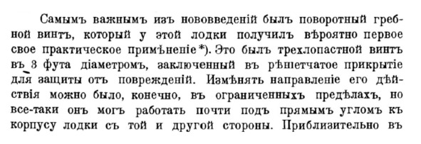 Вот что написано по поводу этой конструкции винта в книге *«Подводное судоходство. История развития и современное состояние» С-Пб 1905 год. в главе, посвященной подводной лодке Робера проекта 1866 года: