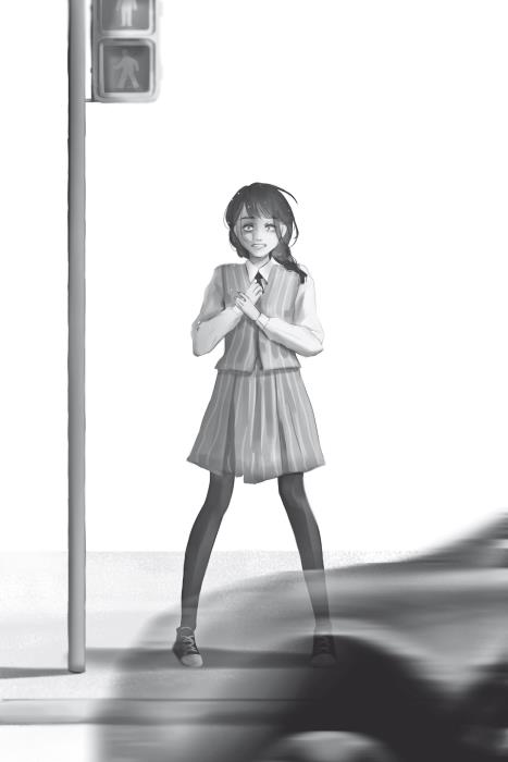 Школьники с зонтами и без пробегали мимо. Совон стояла и смотрела в одну точку, будто находясь в прострации, но вдруг ее взгляд упал на то, что было выведено крупными буквами на тротуаре перед пешеходным переходом, недалеко от главного входа в школу.