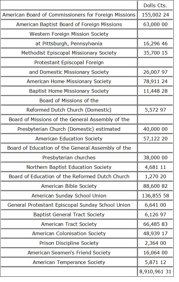 It has been thought suitable to call the attention of mothers and daughters over the wide country to the condition and evils of brothels and of common prostitution, in towns and cities; to send out agents—young men—to preach on the subject; and to organise subsidiary societies after the fashion of all reforms. The annual report of “The New York Female Moral Reform Society” for 1838, (a very decent name certainly for the object), announces 361 auxiliaries and 20,000 members, with 16,500 subscribers (all females!) to the “Advocate of Moral Reform,” a semi-monthly paper, published by the parent society, devoted to the text of the seventh commandment, and to the facts and results growing out of its violation. “This same class of reformers have heretofore been accustomed to strike off prints of the most unmentionable scenes of these houses of pollution in their naked forms, and in the very acts of crime, for public display, that the public might know what they are: in other words, as may be imagined, to make sport for the initiated, to tempt the appetites and passions of the young, who otherwise would have known little or nothing about it, into the same vortex of ruin, and to cause the decent and virtuous to turn away with emotions of ineffable regret.”