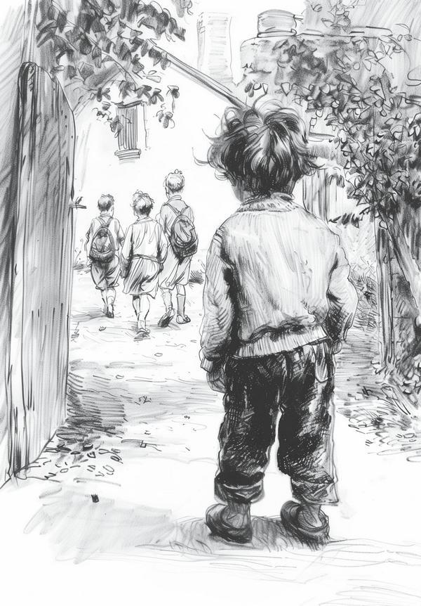 Во дворе школы находилось уже много детей и взрослых, все были нарядно одеты. То тут, то там слышны были возгласы оживления, на лицах сияли весёлые улыбки. Играл духовой оркестр. Увидев всё это, я остановился в растерянности, вся моя решительность мгновенно улетучилась. Дело в том, что в детстве я отличался какой-то странной, смешившей всех, стыдливостью.