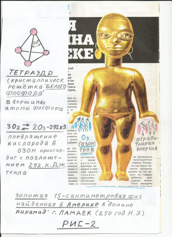 Для нашего исследования необходимо разгадать таинственное устройство «Цилиндров фараонов», и, как я полагаю, в электрическую схему этих «жезлов» входит как излучатель элемент кремний (для правой руки мужчин). Следует сказать, почему я пришел к такому убеждению. Во-первых, линза фотоаппарата, изготовленная из кварцевого стекла фиксирует на фотоплёнку события прошлого, отдалённого от нашего времени, по меньшей мере, на 40 лет. А это не хрустальный шар (окись кремния), который позволяет заглядывать как в прошлое, так и в будущее (но только с помощью отдельных личностей), способных настроиться на соответствующие частоты. Фотоаппарат это механический прибор, который не требует уникальных способностей человеческого разума, следовательно, кварцевое стекло само является детектором, который имеет прямую связь с «антимиром». Следует также ознакомиться с работами А. В. Золотова, доказавшего, что кварцевые эталоны времени ведут себя более чем странно в районе эпицентра Тунгусского «метеорита». Они отстают на две секунды в сутки, что во много крат превосходит допустимую погрешность. Всё это опубликовано. Во-вторых, полагаю что «цилиндры фараонов», предназначались в первую очередь именно для связи с параллельными мирами и миром предков в том числе, что бы получать из этих миров важную для народа информацию. Об этом свойстве «цилиндров фараонов», говорится в частности, в рукописи Конта Валевского, дошедшей до нашего времени из глубины веков. В третьих, странной кажется информация о теплофизических свойствах горного хрусталя – он всегда холоден на ощупь. Патриции Древнего Рима в жаркую погоду шарами из горного хрусталя охлаждали руки. Ювелиры издавна проверяли его подлинность, прикладывая к щеке, чтобы почувствовать прохладу. Надо полагать, что это не просто субъективные ощущения, а явная привязка к миру холода (антимиру), когда подключение энергетики человеческого тела к хрусталю замыкает электрическую (теплофизическую) цепочку с параллельным миром.