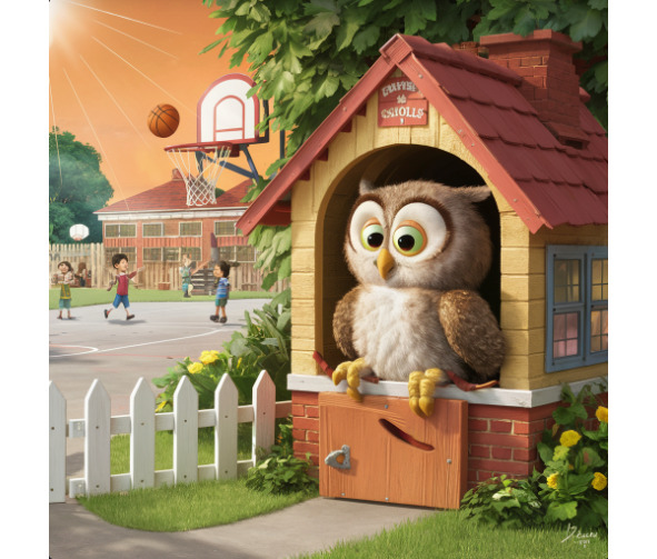 Ubicado cómodamente en medio de los imponentes árboles cerca de la escuela de los niños, había un pequeño y pintoresco de la casa. No era como cualquier casa común que usted puede encontrar en el bullicio de la ciudad; era la casa de Amalia la lechuza. Su casa era un pequeño y encantador rincón, elaborado a partir de ramas, hojas, y una pizca de magia.