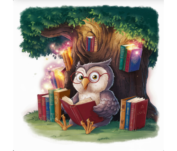 Debajo de la expansión de las ramas de un majestuoso árbol de roble, ubicado en el corazón de el patio de la escuela, se sentó Amalia la lechuza. Con sus plumas erizadas por la suave brisa y sus ojos se iluminan con curiosidad, ella posado sobre una gruesa rama, rodeado de un montón de libros de alta que ella.