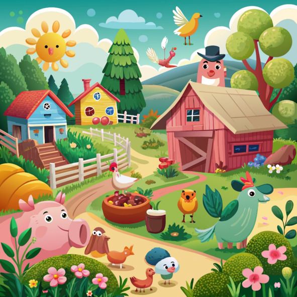 Los pollos se peck y arañazos en el suelo fértil, la puesta de sus huevos en las cómodas nidos, mientras que los cerdos jugaban en el barro, sus colas rizadas meneando con alegría. Juntos, trabajaron incansablemente para asegurar que el Agricultor de la granja de Bill prosperado y ha florecido.