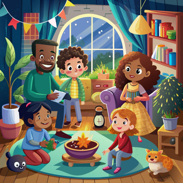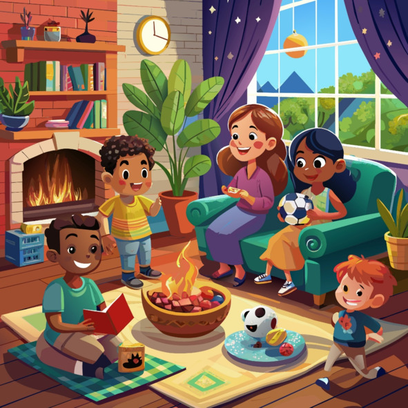 En las tardes, cuando el sol se sumerge por debajo del horizonte, se congregaban alrededor del pozo de fuego, asar malvaviscos y compartir historias bajo el manto de estrellas. Y como la noche se hizo de noche y el fuego crepitaba, ellos se abrace, agradecido por el amor y la felicidad que llena sus corazones.