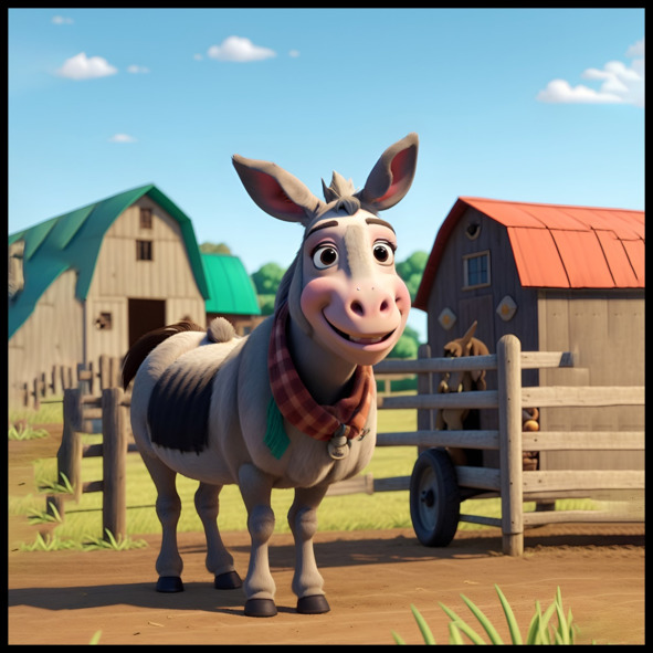 Living on a bustling farm alongside pigs, sheep, and geese, Spike the donkey yearns to be more than just an ordinary farm animal. Just beyond the fences lies a racetrack where majestic horses thunder by, participating in exhilarating races. Spike is enchanted by these graceful creatures and frequently sneaks away to watch them train and compete.