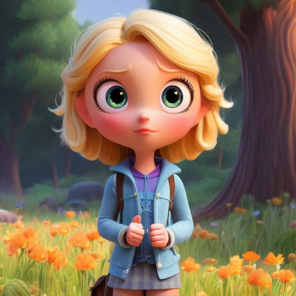 In a cozy little town nestled between rolling hills and whispering trees, there lived a cheerful blonde girl named Karina. She resided in a snug cottage with her loving family, the Robinsons. Her father, Jack, was a kind-hearted man who worked at the local bakery, filling the air with the aroma of freshly baked bread each morning. Her mother, Amanda, had a gentle smile that could brighten even the gloomiest of days, and she spent her time caring for their home and garden. Together, they created a warm and welcoming atmosphere that made their house feel like the heart of the neighborhood.