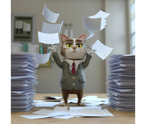 It was another ordinary day in the office, but for Kevin the cat, it was anything but ordinary. As he sat at his desk, buried under a mountain of paperwork yet again, a sense of frustration began to simmer within him.