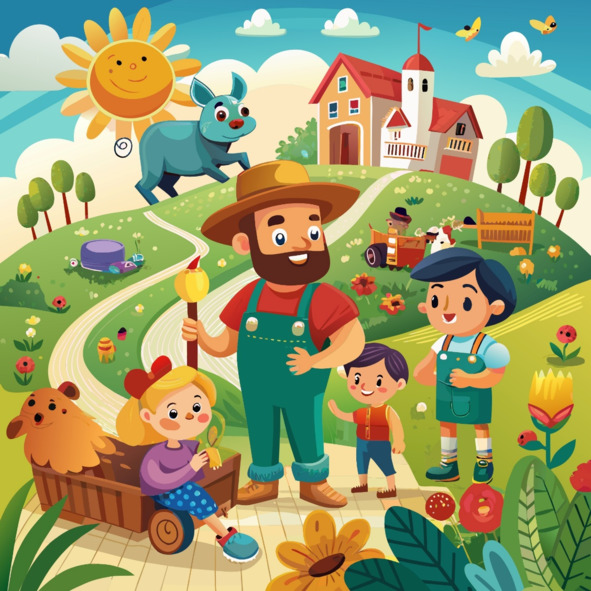Там стояла причудливая ферма, принадлежащая добросердечному фермеру по имени Билл. Его ферма была оживленным центром деятельности, наполненным веселыми звуками кудахтанья цыплят и довольного хрюканья его игривых поросят.