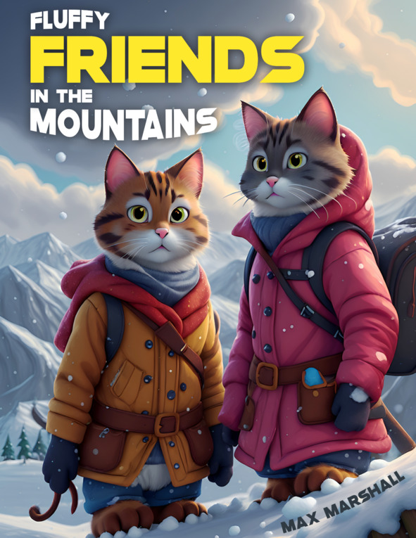 Together, they stood tall, their silhouettes etched against the evening sky, ready to face whatever adventures lay ahead.“ „Title: The Brave Adventure of Snowy Peak Cats