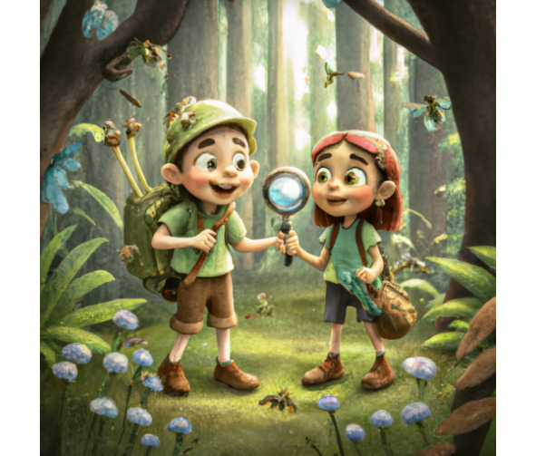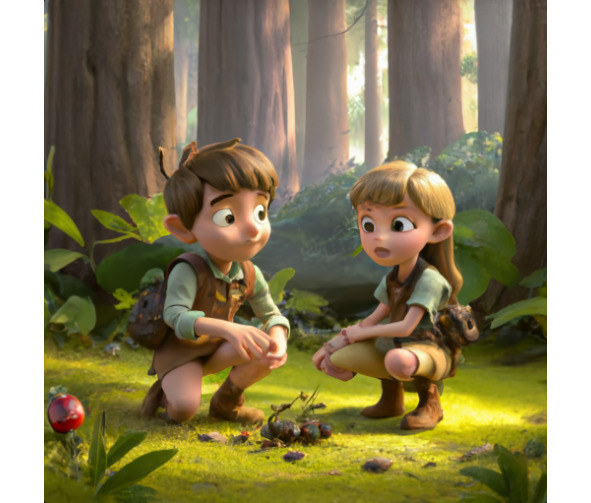 Together, they followed the winding path deeper into the forest, their senses alive with the thrill of discovery. They paused every now and then to inspect a particularly interesting leaf or examine the intricate patterns of a spider’s web, their curiosity driving them forward with each new find.