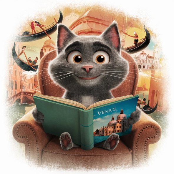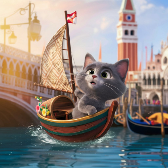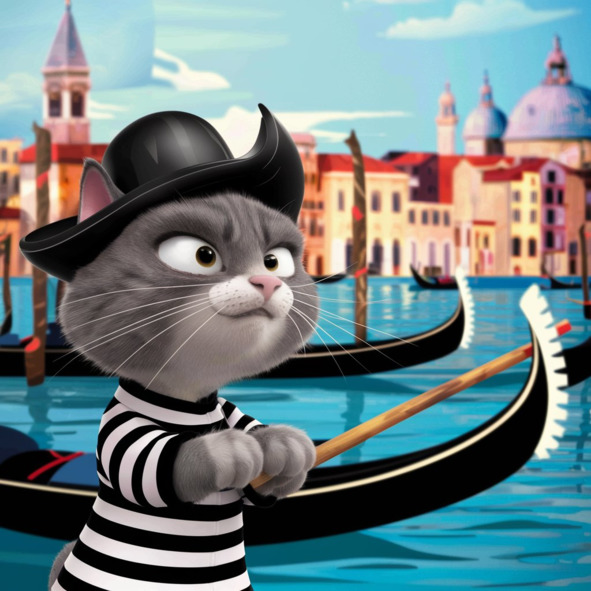 In the heart of Venice, among the winding canals and picturesque bridges, there lived a cat named Osman. Osman was an unusual member of the feline family; he was an elegant and enterprising creature with a deep love for the shimmering waters that flowed through the city like veins of liquid silver. His fur was a rich blend of ebony and sable, perfectly complementing the golden hue of his eyes, which sparkled with curiosity and mischief.