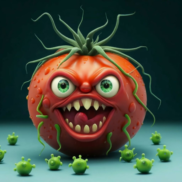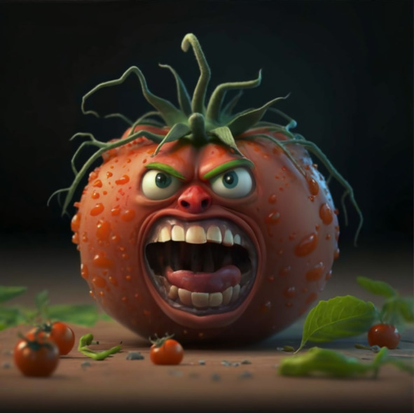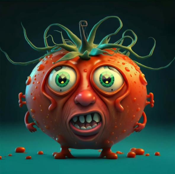 Como Tate vagaban por las calles desiertas, el vibrante ciudad ahora sumido en la oscuridad, un siniestro transformación superó a él. Su piel comenzó a onda y la curvatura, torsión en grotescas formas como él creció más y más amenazador por el minuto. Los mutantes de tomate ya no era la cara amable que todo el mundo conocía y amaba. Él se había convertido en una criatura monstruosa impulsado por un primal ganas de alimentación.