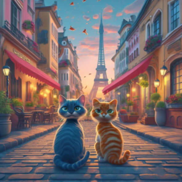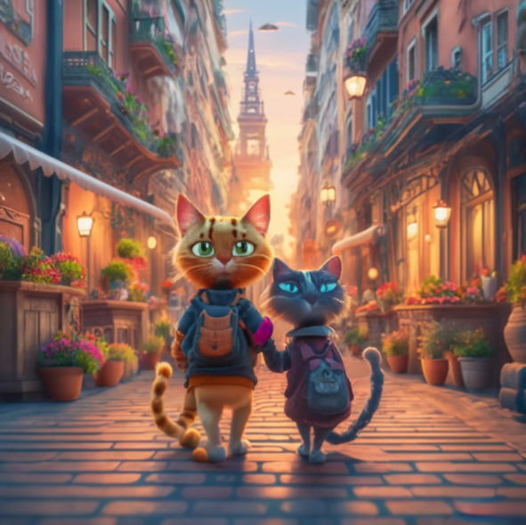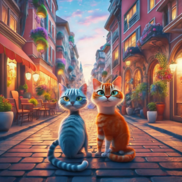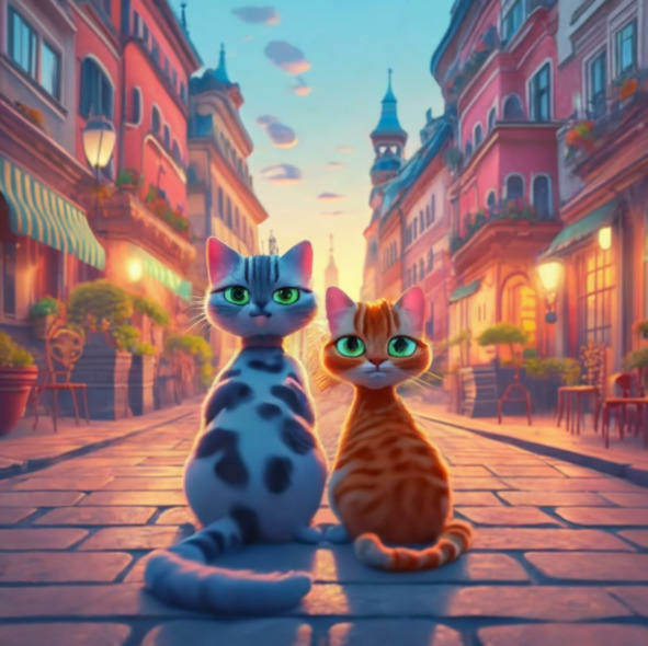 Uno particularmente brillante y soleada mañana, Eduardo y Fernando decidieron explorar la ciudad. Caminaban a través de calles empedradas, sus patas relleno suavemente contra el suelo. La ciudad era un hervidero de actividad como comerciantes poner sus puestos, y los niños jugaban en las plazas. Los gatos se entreteje a través de la animada escena, sus ojos grandes con curiosidad.