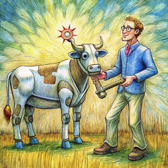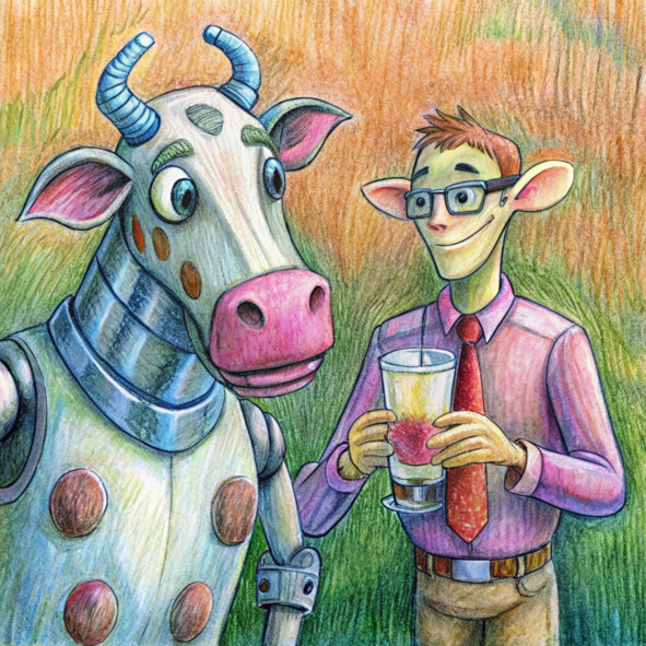 Рядом с роботизированной коровой стояла небольшая миска со свежезаваренным молоком с соседней молочной фермы, готовая к последнему этапу. Чаша терпеливо стояла там, словно молчаливый наблюдатель за его самоотдачей. Но даже он знал, что этого будет недостаточно. Ему оставалось ввести последний волшебный компонент – ингредиент, который сделает эту роботизированную корову не просто производящей молоко, а чем-то по-настоящему замечательным
