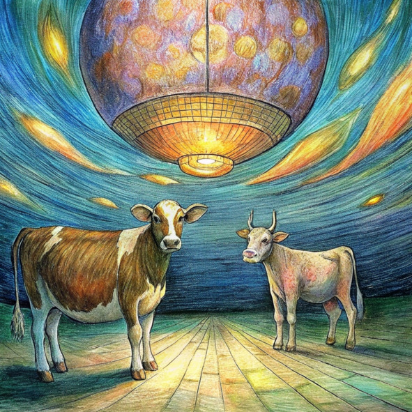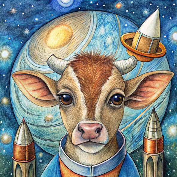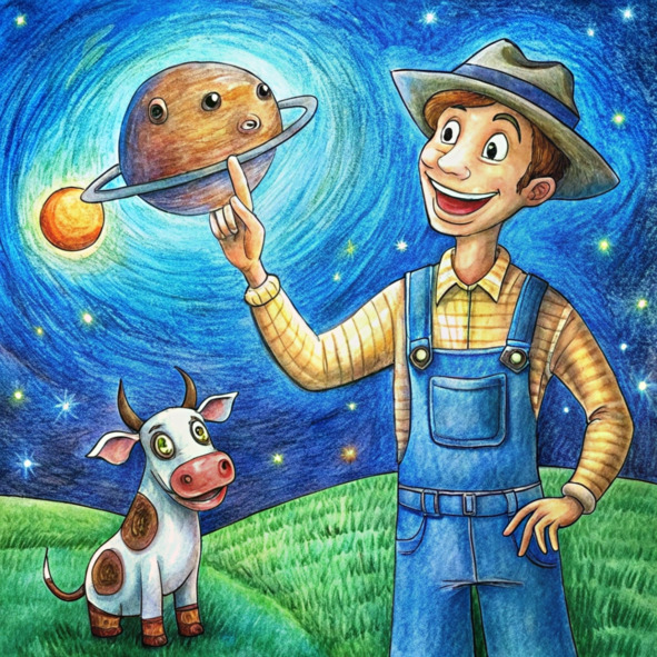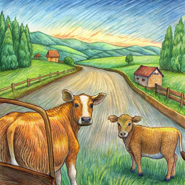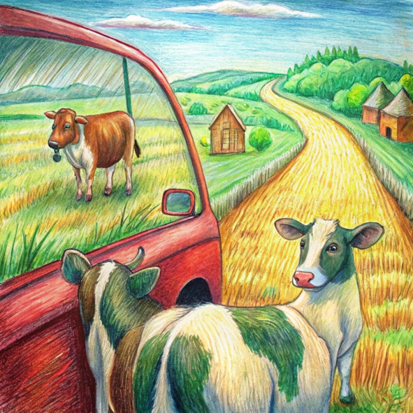 Солнце выглянуло из-за поросших травой холмов, заливая теплыми лучами тихую ферму. Легкий ветерок шелестел в кронах деревьев, и воздух наполнял сладкий аромат сена. На солнечном лугу стояла большая коричневая корова по имени Джессика и жевала сочный клевер.