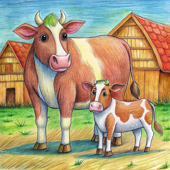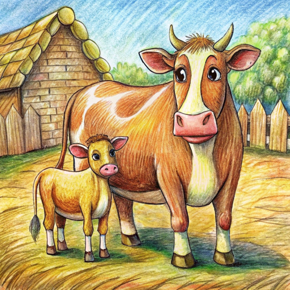 Джессика была не просто коровой. Она была доброй и терпеливой матерью. Ее нежное мычание разносилось по ферме, когда она присматривала за своей маленькой дочерью Наоми. Наоми была любопытным теленком с большими яркими глазами и пушистой коричневой шерсткой. Она игриво прыгала вокруг своей матери, пощипывая травку и познавая мир.