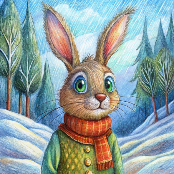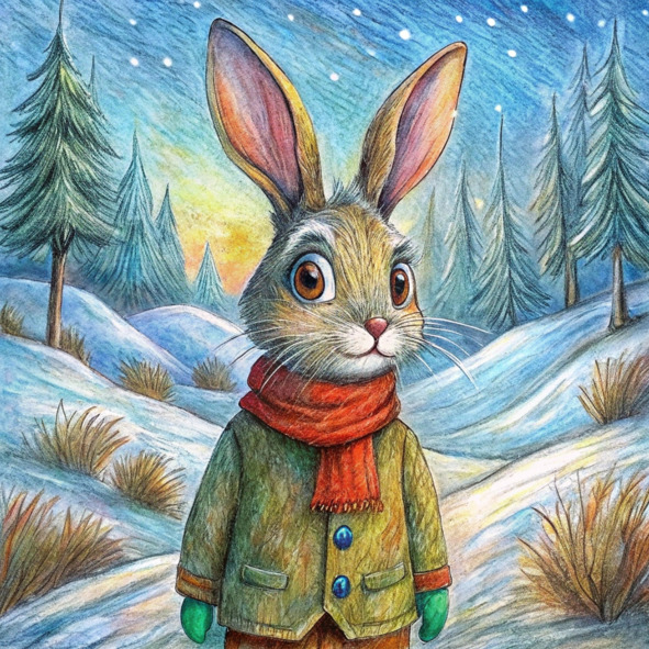 Джулиан, молодой, предприимчивый кролик, прижался к сугробу, пытаясь укрыться от пронизывающего холода. Карта, его единственный путеводитель, холодила его шерсть. Он оглядел замерзший мир, бесконечное бело-голубое пространство. Тишина нервировала, давила на него, как тяжелое одеяло.