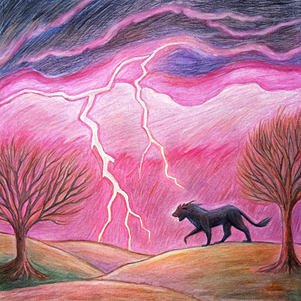 Тина смотрела, как удаляющаяся фигура Джулиана исчезает в облаке растворяющейся сахарной ваты, а ужасающий гром все еще грохотал вокруг них. Великолепный лев, охваченный паникой, казалось, растворился в буре, олицетворяя страх на фоне клубящихся розовых облаков.