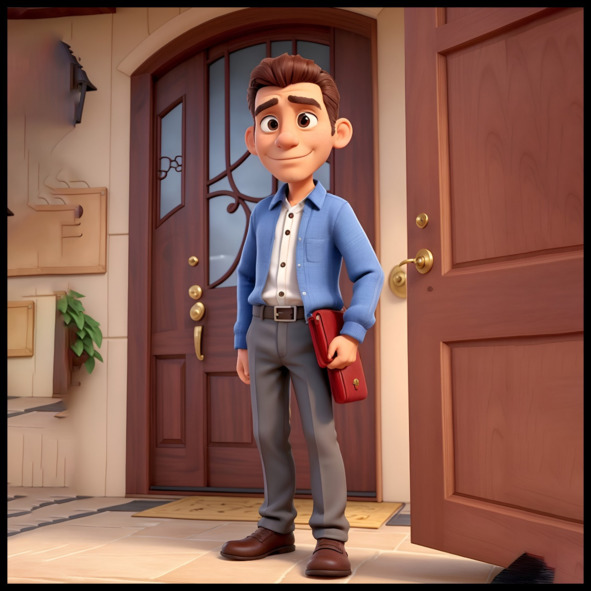 As Tony burst in, his face filled with cheer.