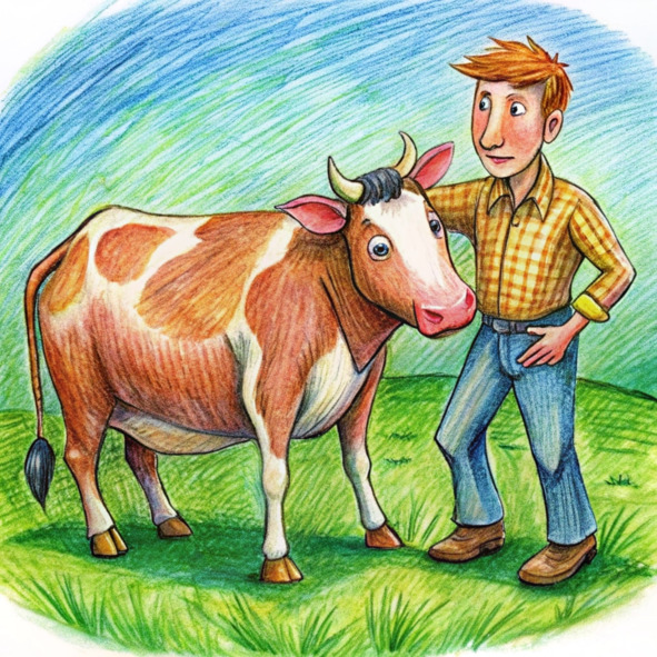 – Бесси, девочка моя, мы должны работать вместе. Я знаю, что мы немного не подходим друг другу, но мы справимся! Ты понимаешь, мой бычий друг?