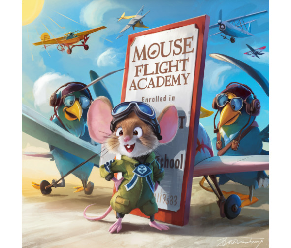 After his first exciting flight, Mouse Jordan returned home with a newfound sense of purpose. He couldn’t wait to start the next chapter of his aerial adventure-flight school.