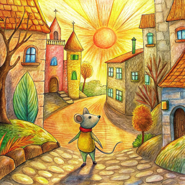 Солнце сияло в небе большой желтой улыбкой, заливая городок Окхейвен теплым золотистым светом. Это был шумный день, люди сновали по своим делам, их голоса жужжали в воздухе, как шмели. В самом центре этой веселой сцены был маленький мышонок по имени Дэвид. Это был крошечный человечек, едва достававший ребенку до колена, с мягким, бархатисто-коричневым мехом и подергивающимися от возбуждения усами.