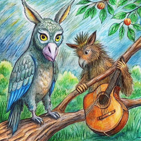 Хосе стоял, твердо ступая копытами по лесной подстилке, все еще держа гитару в руках. Он знал, что его музыка – это не просто ноты и аккорды – это источник силы, способный вселять радость и изгонять страх. Он продолжил свое путешествие, уходя из леса навстречу неизвестности, неся с собой свою музыку, готовый принять все, что ждет его впереди. Ибо теперь, он знал, он обрел уверенность и мужество следовать песне в своем сердце.