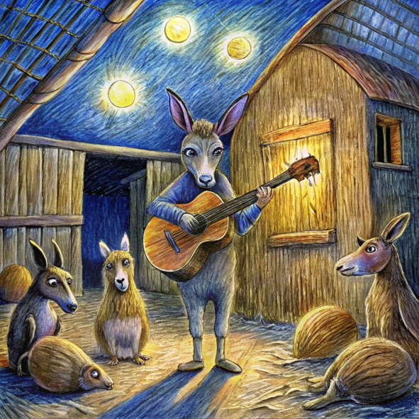 – На мгновение воцарилась тишина. Фермер Джон посмотрел на своего верного осла, на старую, пыльную гитару, затем на бескрайнее небо за фермой. Наконец, со вздохом, он сказал: