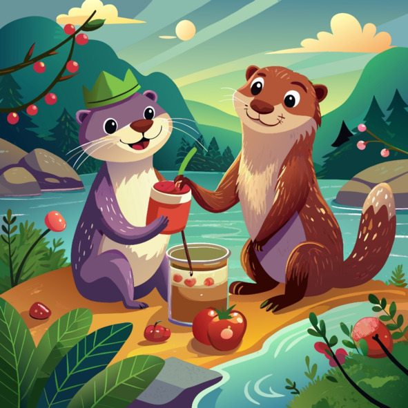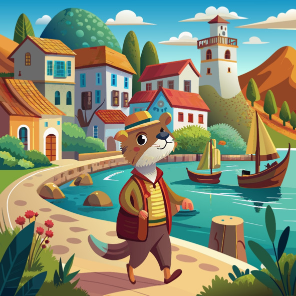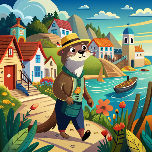 One sunny morning, Leo the cheerful otter was on his usual walk through the bustling marketplace, his whiskers twitching with excitement as he took in the sights and sounds of the lively town. The scent of freshly baked bread mingled with the salty sea air, and the colorful stalls brimmed with a delightful array of fruits, vegetables, and homemade goods.