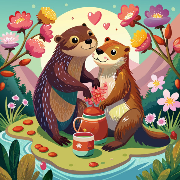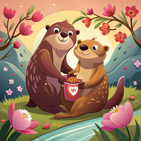 On a bright and sunny Valentine’s Day morning, Leo, the cheerful otter, eagerly set out on his daily walk around the small town nestled by the shimmering beach. The salty breeze tousled Leo’s fur as he strolled along the sandy path, his whiskers twitching with excitement.