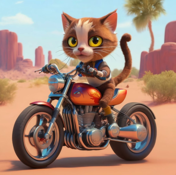 Con el rugido de su motocicleta por debajo de él y el viento corriendo a través de su piel, Kevin el gato se embarcó en su viaje a través de los hermosos paisajes de California. La carretera se extendía ante él, lo invita a explorar sus giros y vueltas, sus colinas y valles.