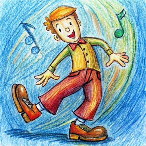 Он развернулся, озорно подмигнув, и начал танцевать глупую джигу, неуверенно балансируя на одной ноге и напевая свою любимую песню,