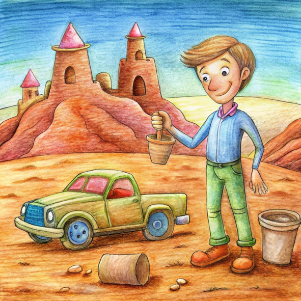 – Что ж, это, безусловно, приключение, – сказал он, игриво подмигнув горячему солнцу. Он схватил лопату и начал копать. Песок струился сквозь его пальцы, как золотой шелк. Вскоре он уже строил великолепный замок. Весело насвистывая, он вылепил башню с флагом из покрытой листьями ветки.