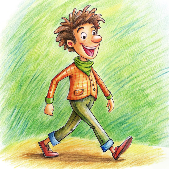 Он шел по оживленным улицам, уворачиваясь от людей и автобусов, всегда со своей радостной мелодией в голове. Он махал прохожим, одаривая их доброй улыбкой и теплым