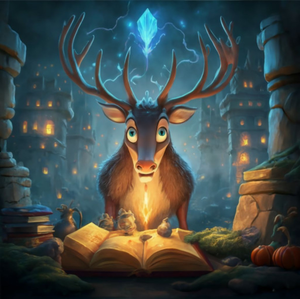 Steve and Elly’s hearts raced as they beheld Edward in all his glory. His fur, a shimmering coat of silver under the enchanting moonlight, exuded an otherworldly brilliance that illuminated the night around them. His antlers, like intricate crowns of nature, towered above him with a regal grace that left the children in awe.