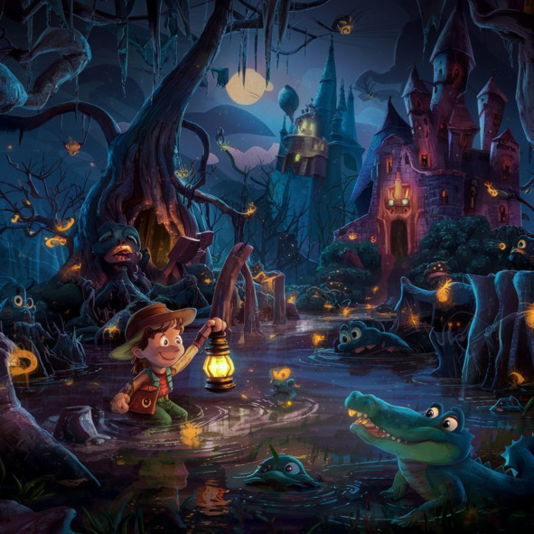 There is a mysterious swamp in a shady forest. A thick fog hung in the air, shrouding the gnarled trees in an eerie blanket of fog. The whispers of ancient fairy tales spread through neighboring towns, painting the swamp as a place of horror and mystery.