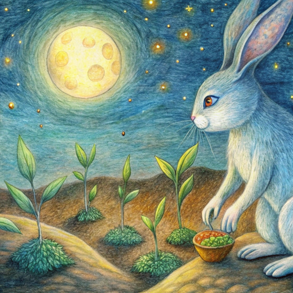 Он не знал, было ли это силой семени или чистой магией его желания, но Арон чувствовал странное покалывание энергии, исходящее от земли под его лапами. Лунный свет казался ярче, как будто он лился прямо на то место, где он посадил семя.