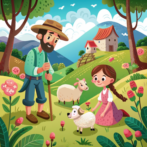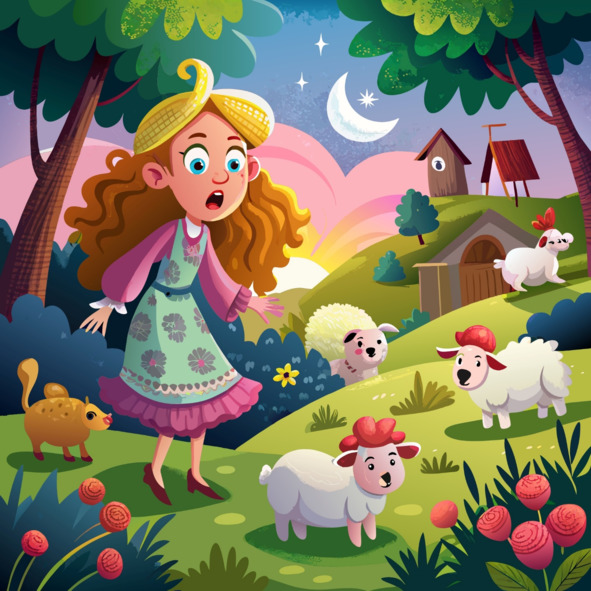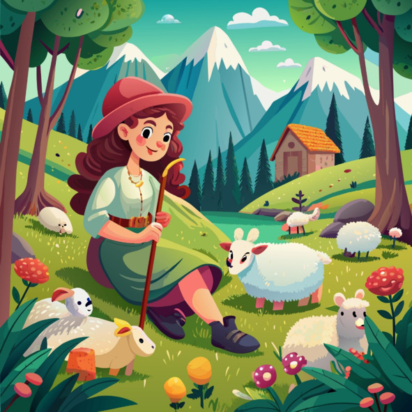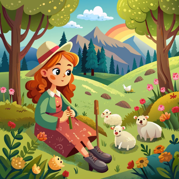 Когда солнце достигло своего пика в небе, заливая теплым сиянием тихую ферму, Ирен отправилась со своим стадом овец на ежедневный выпас. Перед ними простирались холмы, обещая бесконечные поля с сочной травой и чистое голубое небо.