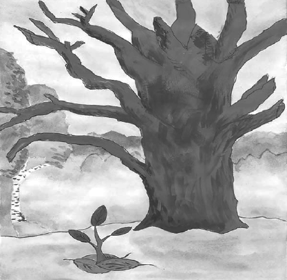 Наступила весна. Деревья вокруг стали зеленеть, все окружающее пришло в движение, воздух расцвел и заиграл волшебными цветами, запахами, музыкой. Наше Дерево смотрело на это все со спокойствием, которое принесла задумчивость зимы. Оно не участвовало в зарождении жизни, на его ветках больше не взбухали почки, а большая часть коры безвозвратно опала.